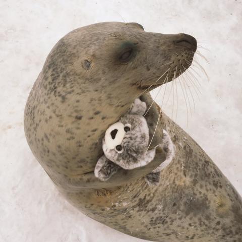 Сотрудники зоопарка в японском Момбецу опубликовали в Твиттере несколько снимков тюленя, играющего с плюшевой копией самого себя. На снимки животного обратило внимание издание Mashable.